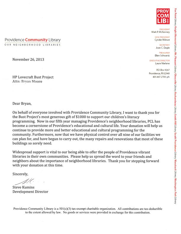 For me personally, these donations resonate a great deal. When I was young, my folks were going through a terrible divorce. Quite often, after school I would go to the library and stay as late as I could. It was a wonderful place that allowed me to escape the pain of a family breaking up at home. I'll never forget the librarian; a very kind lady named Mrs. Wocjiak who knew what was happening at home and would often let me help her shelve books and recommend new authors that she thought I might like. She also allowed me to perform puppet shows there as I had a considerable collection of marionettes that entertained the smaller children. She also showed me how to make a book filled with my own illustrations and stories. It was really nothing more than a three ring binder filled with my scribbles on lined notebook paper but to me it might as well have been The Book of Kells, a treasure which gave me a purpose and a reason to focus elsewhere than the problems at home.