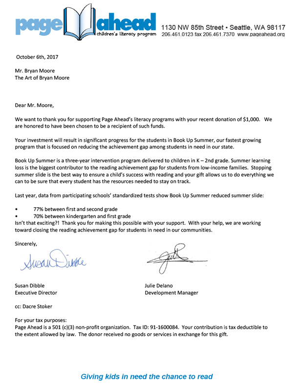 One of the privileges that the bronze bust series allows me to do is to support children's literacy programs across the globe.